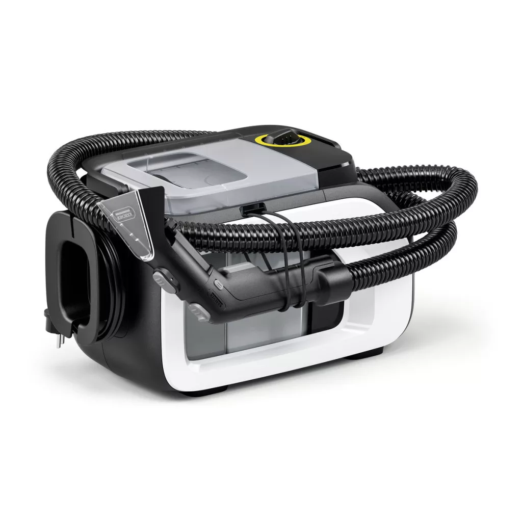 A Kärcher SE 3 Compact Home Shoe N1 kárpittisztító erőteljes és energiahatékony permetkivonó tisztító textilfelületekhez, kompakt kialakítással, szálmély tisztítással és higiénikus rendszeres tisztító funkcióval.